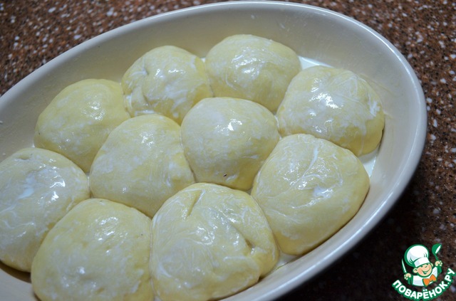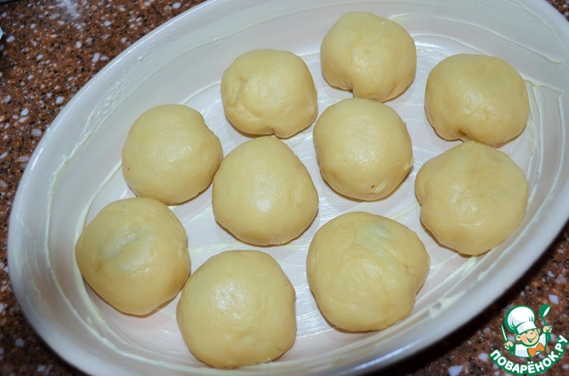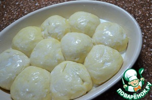 Форму смазать сливочным маслом и выложить заготовки на расстоянии друг от друга.