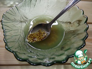 Для заправки. Смешать растительное масло, яблочный уксус, лимонный сок, горчицу и сахарную пудру.