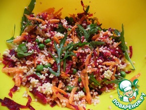 Морковь и свеклу натереть на крупной терке, рукколу хорошо промыть, обсушить.