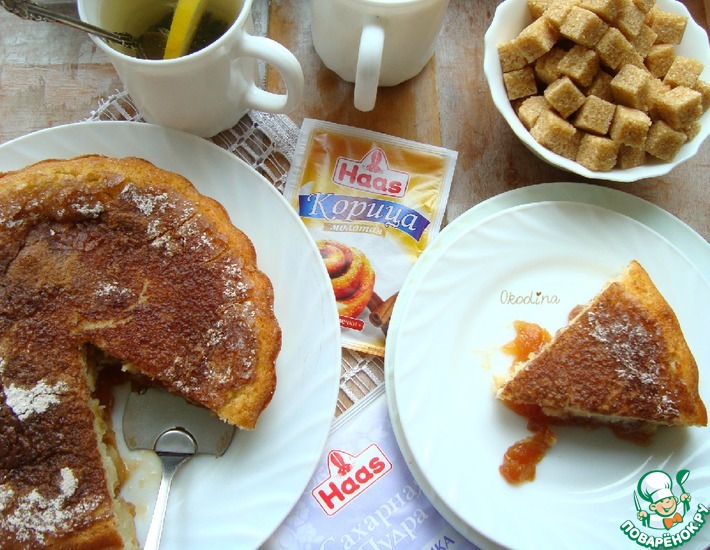Остывший пирог разрезала на два коржа и промазала грушевым повидлом. Думаю, получилось не хуже, чем испеченый сразу с повидлом.