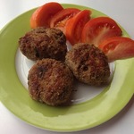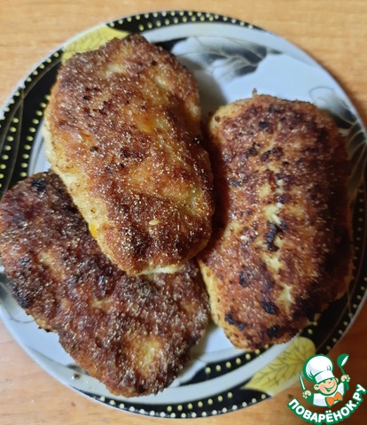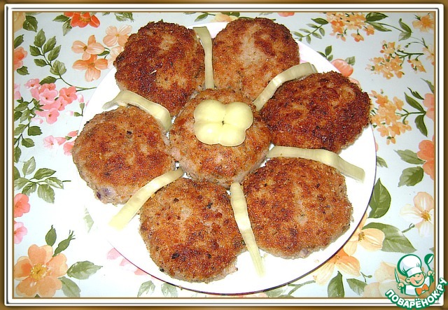 Сформировать котлеты и обвалять в панировочных сухарях. Обжарить котлеты с двух сторон на хорошо разогретой сковороде в небольшом количестве растительного масла.