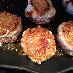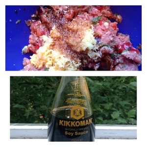 Чеснок натереть на мелкой терке, как и сырой картофель. Влить соевый соус и еще раз тщательно вымесить фарш.