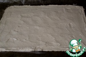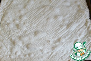 На противень выложить пергамент и смазать его маслом - я выпекала на силиконовом коврике.