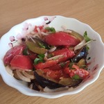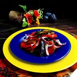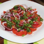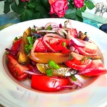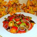 [+5]Сочетание сливы и помидора было мне раньше неведомо, но пришлось по вкусу, делала уже несколько раз, зелень использовала кинзу, очень сочно, коасочно и неожидано!