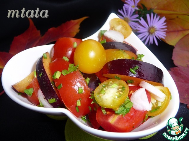 Если у вас имеются свежие сливы и томаты, значит, есть повод объединить эти замечательные продукты в одном салате. Вы удивитесь тому, как они прекрасно сочетаются. По правде сказать, я и сама этого не предполагала, хотя кулинарные эксперименты очень люблю. Рецепт взят из старенькой книги «Овощи и фрукты в нашем питании».