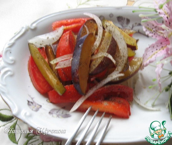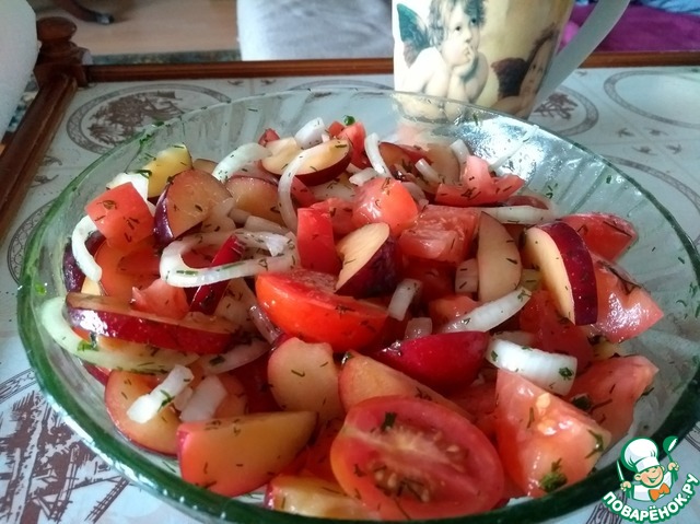 Ингредиенты для «Салат из лука, томатов и слив»: