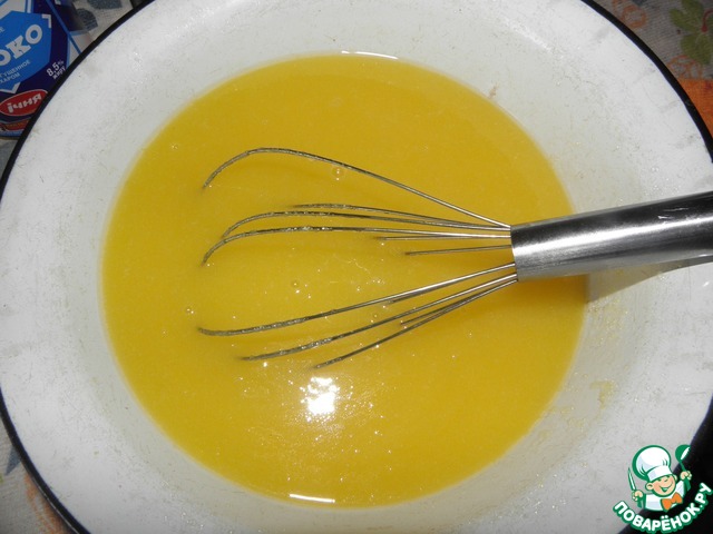 2. Смешиваем желтки (5 шт) + растительное масло + сахар.