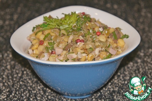 Выложить салат в салатник и украсить горошинками красного перца. Приятного аппетита!!!