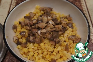 • Добавить грибы, нарезанные ломтиками или кубиками.