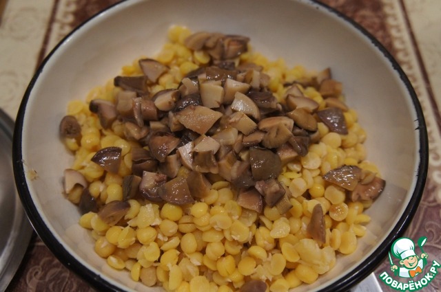 Самое интересное, что за основу я взяла постный вариант, т.к. этого не видела. А по ингредиентам, он ближе к этому, т.к. грибочки свои, огурчик солёный и 1 ст-н сырого гороха! Отчёт и здесь выкладывать? Фото есть!