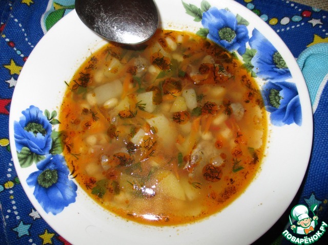 Рецепт «Фасолевый суп с яблоками и печенью»: