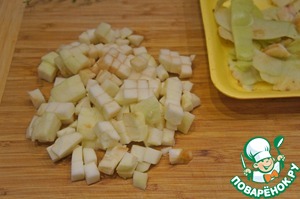 Яблоко очистить и нарезать мелкими кубиками.