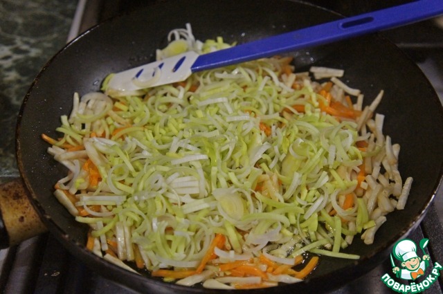 Добавить порей и пассеровать еще 2 минуты.