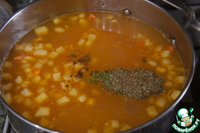 Снять с огня, накрыть крышкой и дать супу настояться.