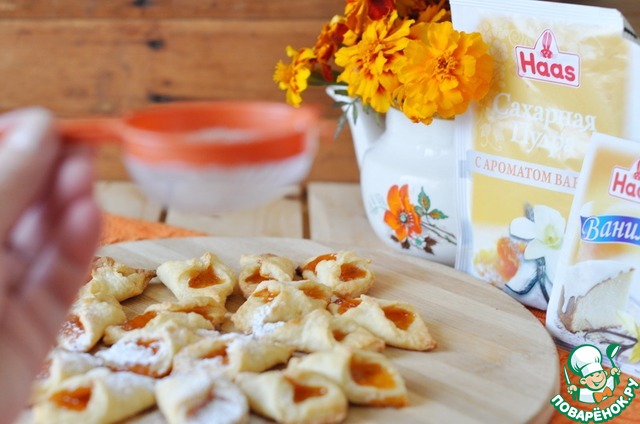 Готовому печенью даём немного остыть и посыпаем сахарной пудрой. У меня с ароматом ванили от Haas.