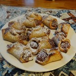 Охлаждённое тесто раскатываем в прямоугольник толщиной около 3 мм. Если вы делаете более одной порции, то рекомендую делить тесто на части и работать с небольшим количеством теста. Так как оно быстро нагревается при комнатной температуре и начинает липнуть.