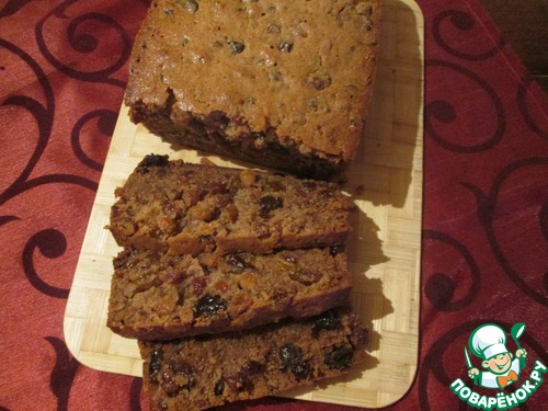 Готовый кекс остудить в форме 30 минут. Вытащить, остудить на решетке полностью. В оригинальном рецепте еще нужно было наколоть кекс шпажкой и пропитать его пивом. После этого завернуть в несколько слоев бумаги для выпечки и выдержать в холодильнике 24 часа. Поскольку мой кекс предназначался не только взрослым, этот шаг я пропустила.