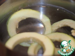 Кольца кабачков опустить в кипящую подсоленую воду.