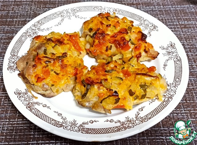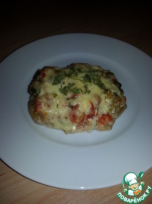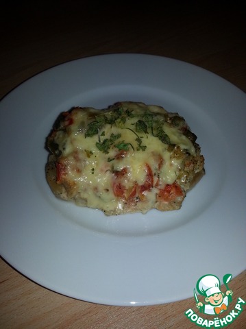 Делала на курином филе, и с соленым домашним огурцом. Перед посыпкой сыром слила жидкость. Очень неплохо получилось, буду иногда повторять для разнообразия.
