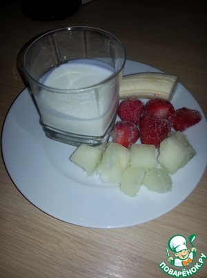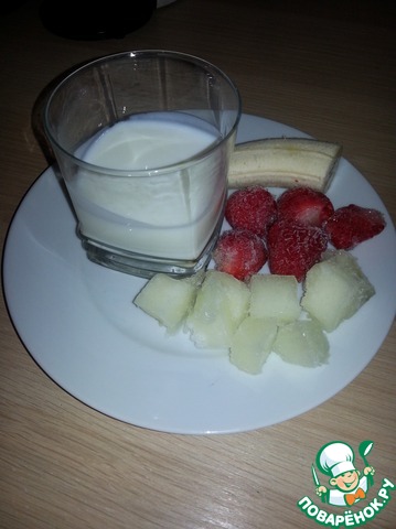 Вот продукты которые нам понадобятся:Кефир, банан, замороженные дыня и клубника.