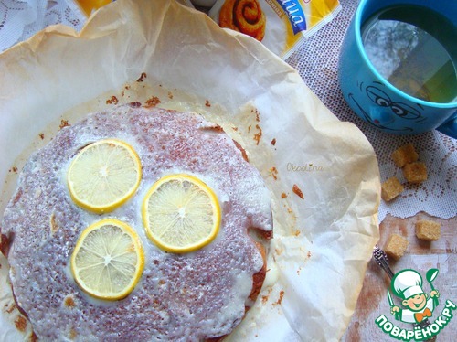 Режем тонкими дольками лимон и выкладываем сверху, присыпаем сахарной пудрой дольки и ставим на 10 минут в духовку опять при т-180 С.