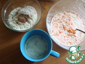 В муку выкладываем корицу, мускатный орех и разрыхлитель. -