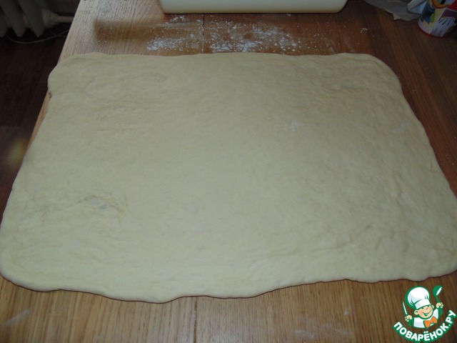 Раскатать прямоугольник, смазать мягким сливочным маслом (удобнее руками).
