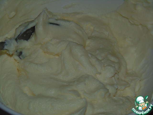 Для глазури смешать маскарпоне с сахарной пудрой.