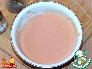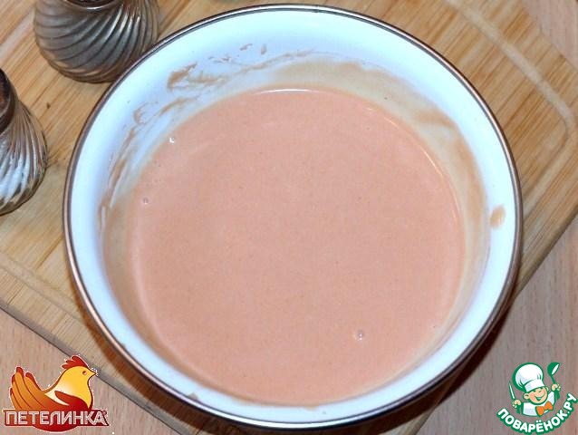 4. Приготовим подливу. Смешиваем бульон, сметану, томатную пасту, добавляем сахар, соль и перец по вкусу, перемешиваем.