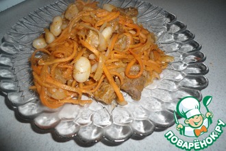 1. Мясо нарезать небольшими кусочками, отбить, посолить, поперчить, обжарить. Обжаренные кусочки мяса нарезать тонкой соломкой.