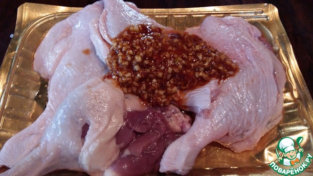 Натереть маринадом и оставить пропитываться на время от 2-х часов до суток.