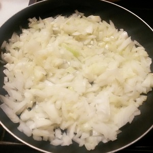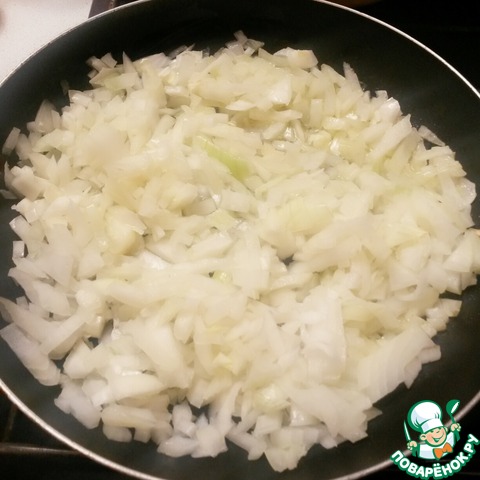 Лук мелко нарезать и обжарить до золотистого цвета с двумя столовыми ложками топленого масла. Посолить щепоткой соли.