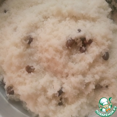 Затем добавить к рису оставшуюся фасоль, перемешать, откинуть на дуршлаг. Дать стечь бульону ( минут пять, как раз пока будем делать газмах). -