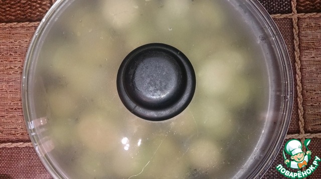 Залить баклажаны кипятком и накрыть крышкой на 20 мин.