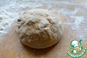 Замесить дрожжевое тесто, в зависимости от качества и плотности муки, ее может понадобится больше или меньше, в тесте равномерно распределить сухофрукты;