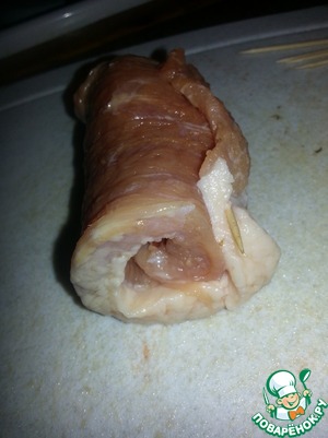 • Заворачиваем в мясо и скрепляем зубочисткой