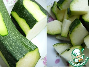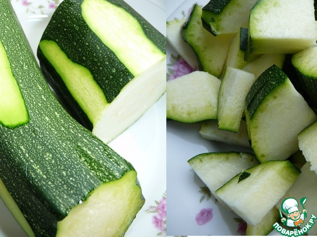 Цуккини помыть, обтереть, обрезать края и нарезать кубиками небольшого размера.