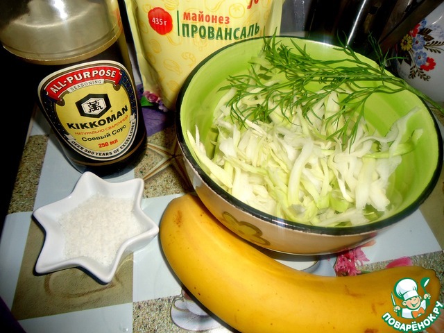 Нарезать кубиками бананы, добавить к капусте, посыпать кокосовой стружкой, заправить майонезом. Салат готов!