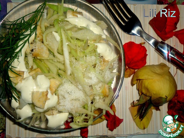 Я не стала менять название салата, именно под этим названием он представлен в одном из кулинарных журналов. Вкус необычный, может понравится любителям нетрадиционных вкусов, непривычных. Скажу сразу, кто любит эксперименты, можете попробовать!