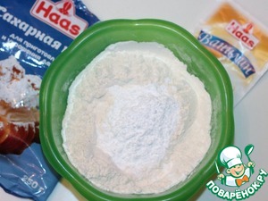 1. Смешать просеянную муку с сахарной пудрой и ванилином.