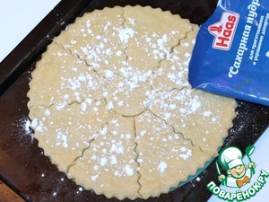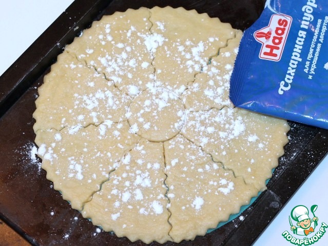 6. Обсыпать заготовку сахарной пудрой и выпекать в разогретой духовке при 180° С, около 15-20 минут.