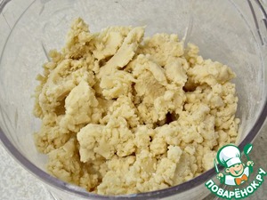 • Мороженое масло, манку фирмы "Мистраль", муку, соль и разрыхлитель положить в кухонный процессор или при помощи миксера превратить ингредиенты в крошку. Форму смазать маслом и засыпать крошку, примять немного руками.