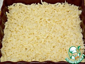 • Сыр натереть на крупной терке и разложить поверх крошек.
