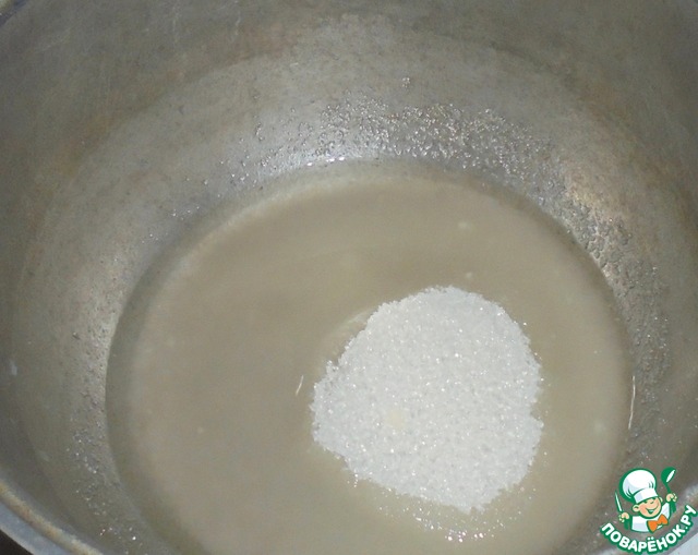 В кастрюле нагреваем воду, высыпаем сахар. Получается однородный сироп.
