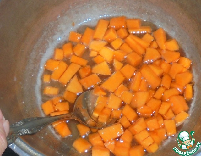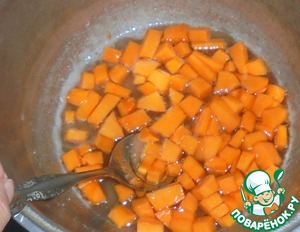Высыпаем нарезанную тыкву в сироп и варим около 20 минут.
