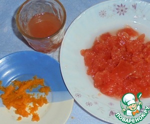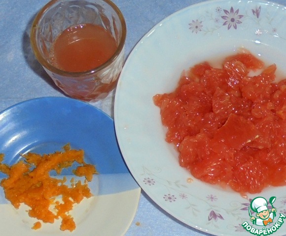 Грейпфрут очистить. Отделить цедру, мякоть и сок.