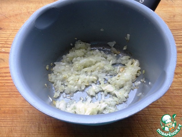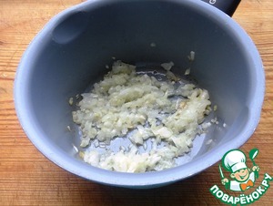 Лук и чеснок мелко нарезать и обжарить на растительном масле до золотистого цвета.