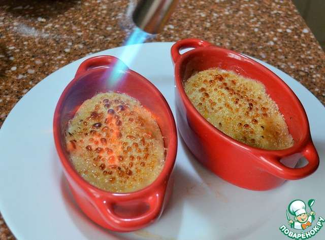 И карамелизовать сахар с помощью кулинарной горелки или под грилем.