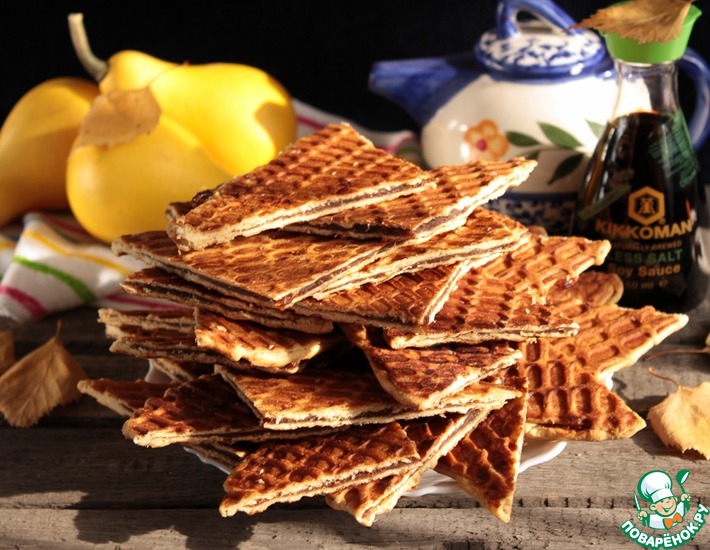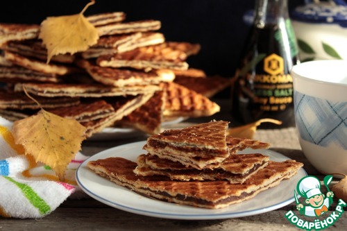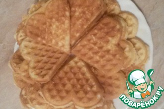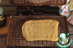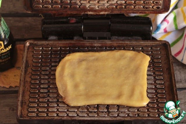 Выпекать в предварительно разогретой вафельнице. У меня вафельница времен Советского Союза. В процессе выпекания вафля будет печься неравномерно, вафельница будет выглядеть как приоткрытая книга, поэтому в середине процесса вафлю необходимо будет перевернуть от себя и продолжить процесс выпечки.