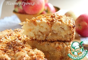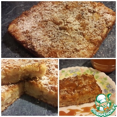 Готовый пирог полностью остудить и полить соусом. Я использовала совсем немного соуса, т. к. прогадала с яблоками, мне попались очень сладкие яблоки. Так что учитывайте и этот факт!